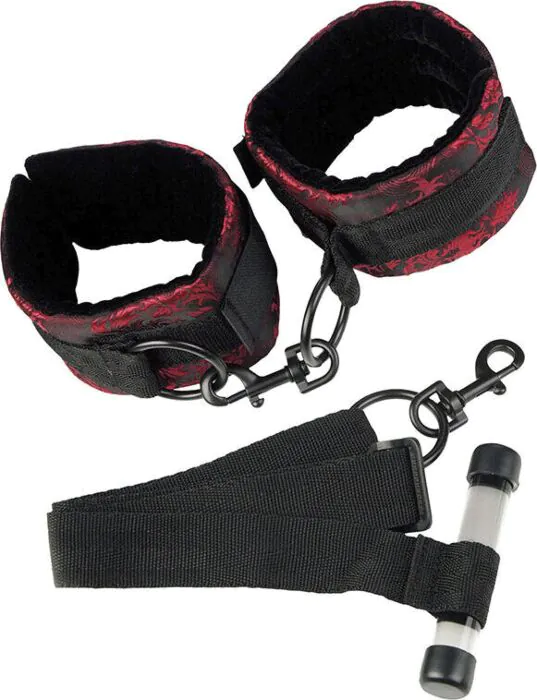 Estas algemas de porta CALEXOTICS Scandal são um conjunto de tiras totalmente ajustáveis pensadas para transformar uma porta standard numa âncora rápida para jogos de imobilização. O interior ultrasuave e afelpado protege os pulsos durante sessões prolongadas, enquanto o tecido com padrão vermelho e preto acrescenta um toque estético sem sacrificar a funcionalidade.