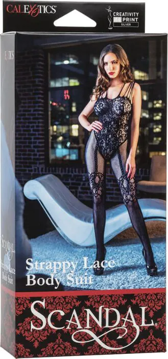 Body de renda Scandal da CalExotics: uma peça inteira em renda elástica com escote de tiras e corte sem virilha para um look provocante e fácil de vestir. Pensado para quem quer apimentar encontros com uma peça sensual que se ajusta a várias morfologias. Compra numa loja erótica online com aconselhamento prático e entrega discreta.