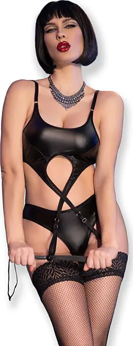 Um conjunto que destaca a elegância e funcionalidade, perfeito para mulheres que valorizam estilo sem sacrificar o conforto. O CR 4625 combina um top com ligas ajustáveis, um tanga aberta e acessórios para apimentar a noite.