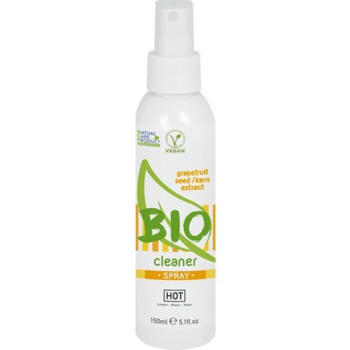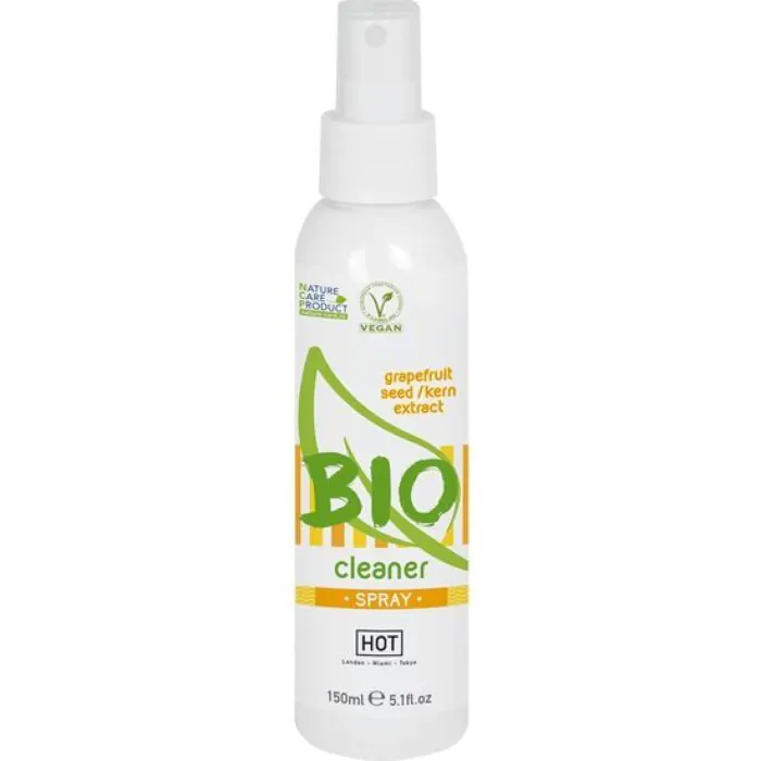 Mantém os teus brinquedos eróticos limpos e seguros com o BIO Cleaner Spray de HOT. Ideal para quem valoriza a higiene e produtos sustentáveis.