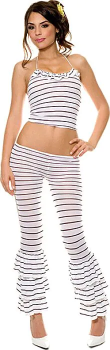 Transforma o teu visual com este conjunto de top e pantalão pirata da Music Legs. Recomendável para quem quer destacar-se com um estilo divertido e ousado.