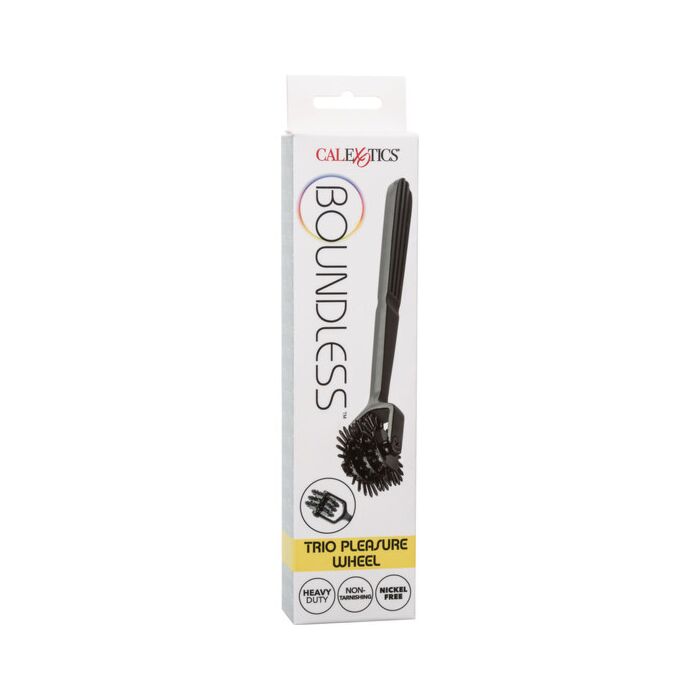 Desfrute de um prazer arrepiante sem fim com o atrevido Trio de Rodas de Prazer Boundless. A Roda de Prazer provocadora é projetada para emocionar com três pinwheels rotativos de 22 pontos, hardware de alta resistência e material que não enferruja. O material resistente e que não enferruja é feito para durar por um tempo de jogo interminável. Com cada rolar sobre sua pele desejosa, esta apaixonante roda vai te emocionar, excitar e elevar cada momento íntimo.