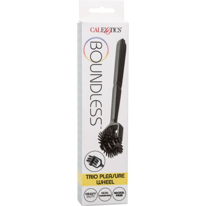 Prazer contínuo na pele com a Roda de Prazer Boundless Trio. Esta roda é composta por três molinetes giratórios com 22 pontos que elevam a experiência de cada toque. O material resistente e que não se deslustra garante uma longa durabilidade, tornando-a perfeita para conexões mais intensas.